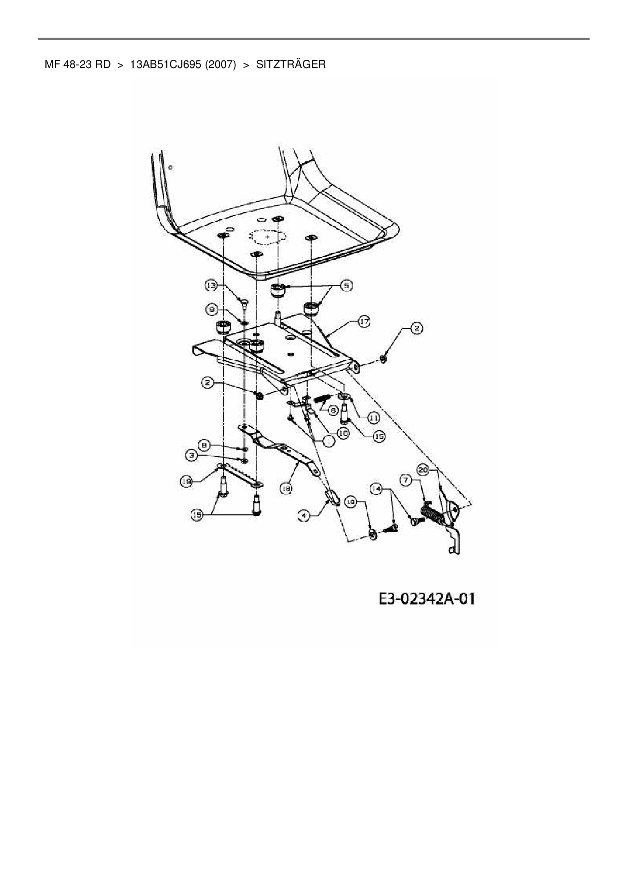 Download Ersatzteil-Zeichnung Massey Ferguson MF 48-23 RD Zeichnung Sitzträger (PDF-Format)