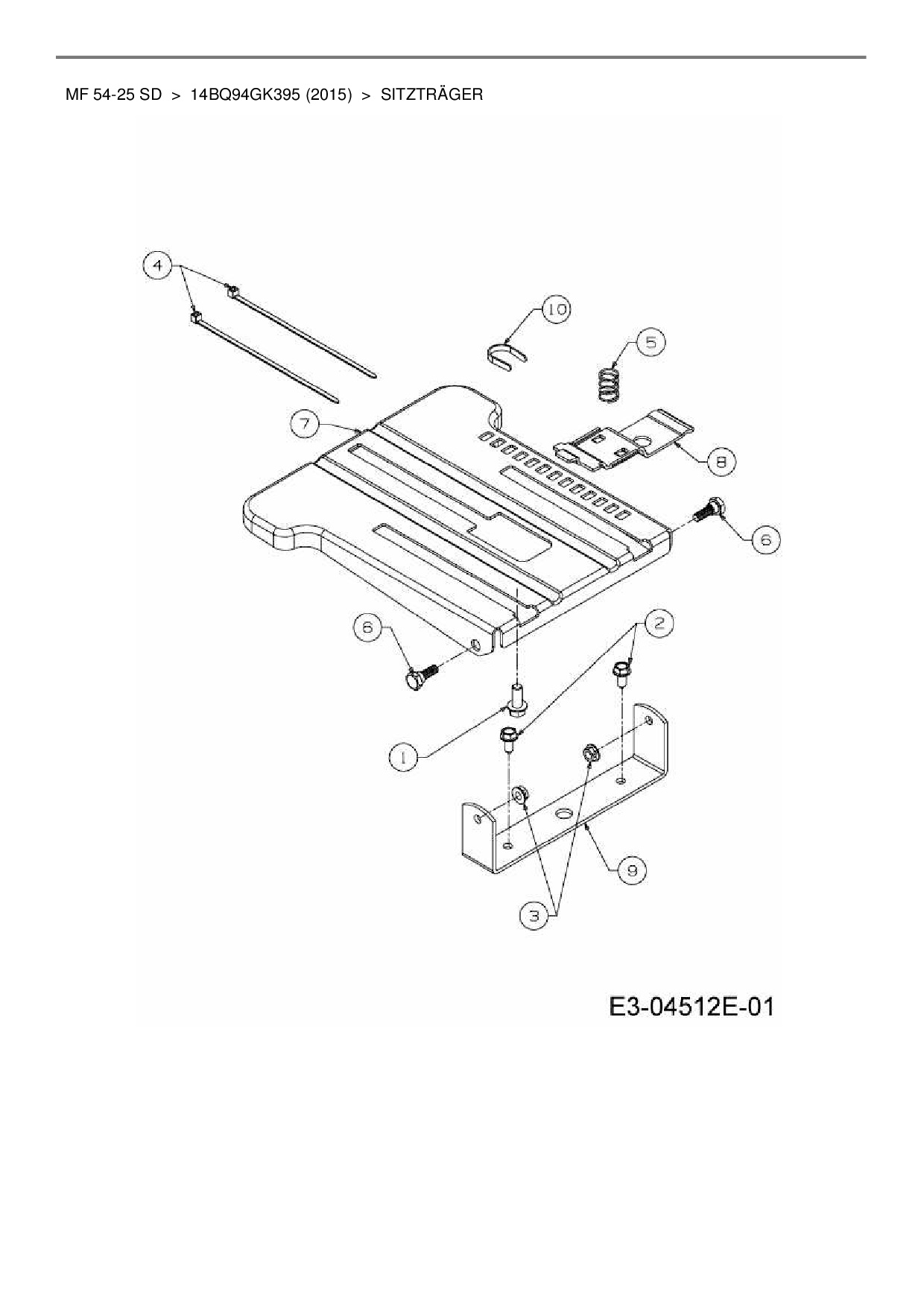 Ersatzteile für Gartentraktor Massey Ferguson MF 54-25 SD aus der Zeichnung Sitzträger:
