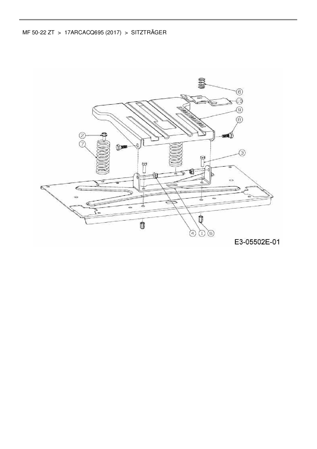 Ersatzteile für Zero Turn Massey Ferguson MF 50-22 ZT aus der Zeichnung Sitzträger: