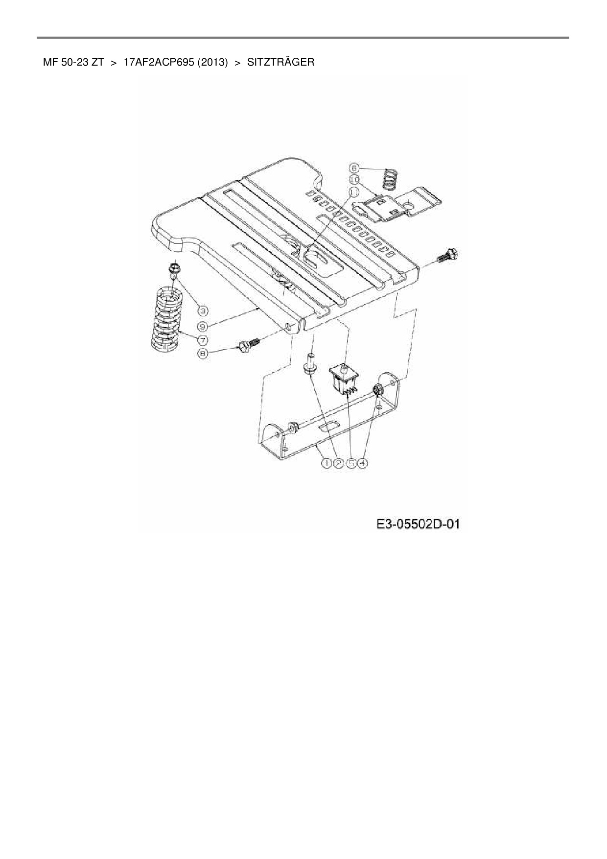 Ersatzteile für Zero Turn Massey Ferguson MF 50-23 ZT aus der Zeichnung Sitzträger: