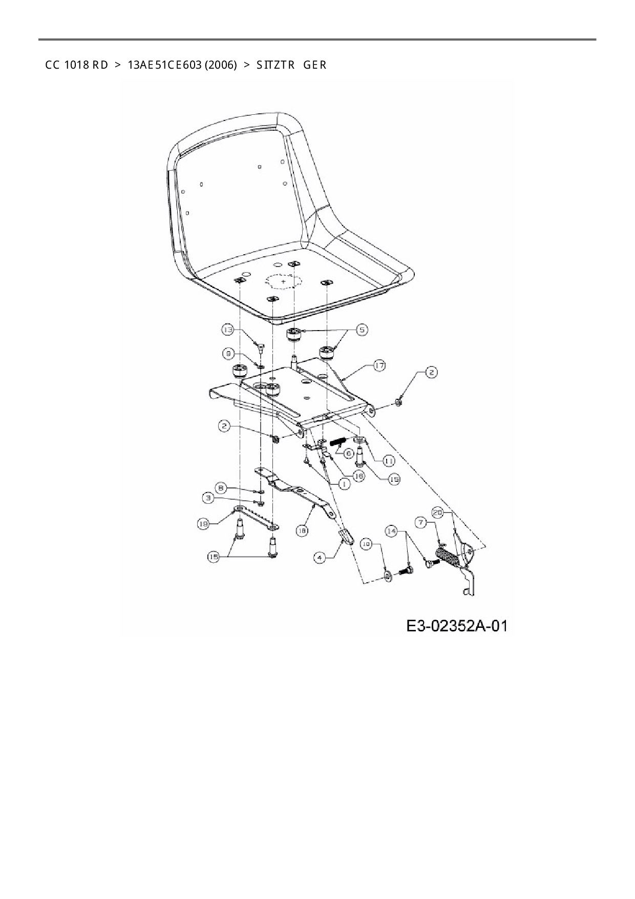 Ersatzteile für Rasentraktor Cub Cadet CC 1018 RD aus der Zeichnung Sitzträger: