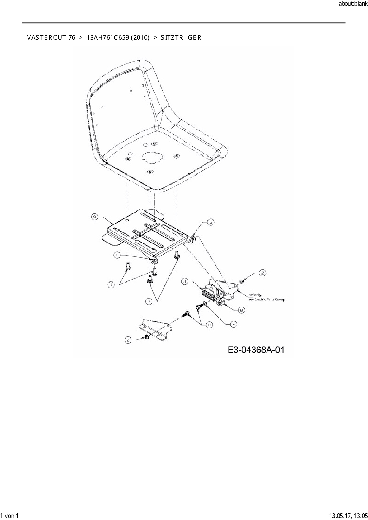 Ersatzteile für Rasentraktor Mastercut Mastercut 76 aus der Zeichnung Sitzträger: