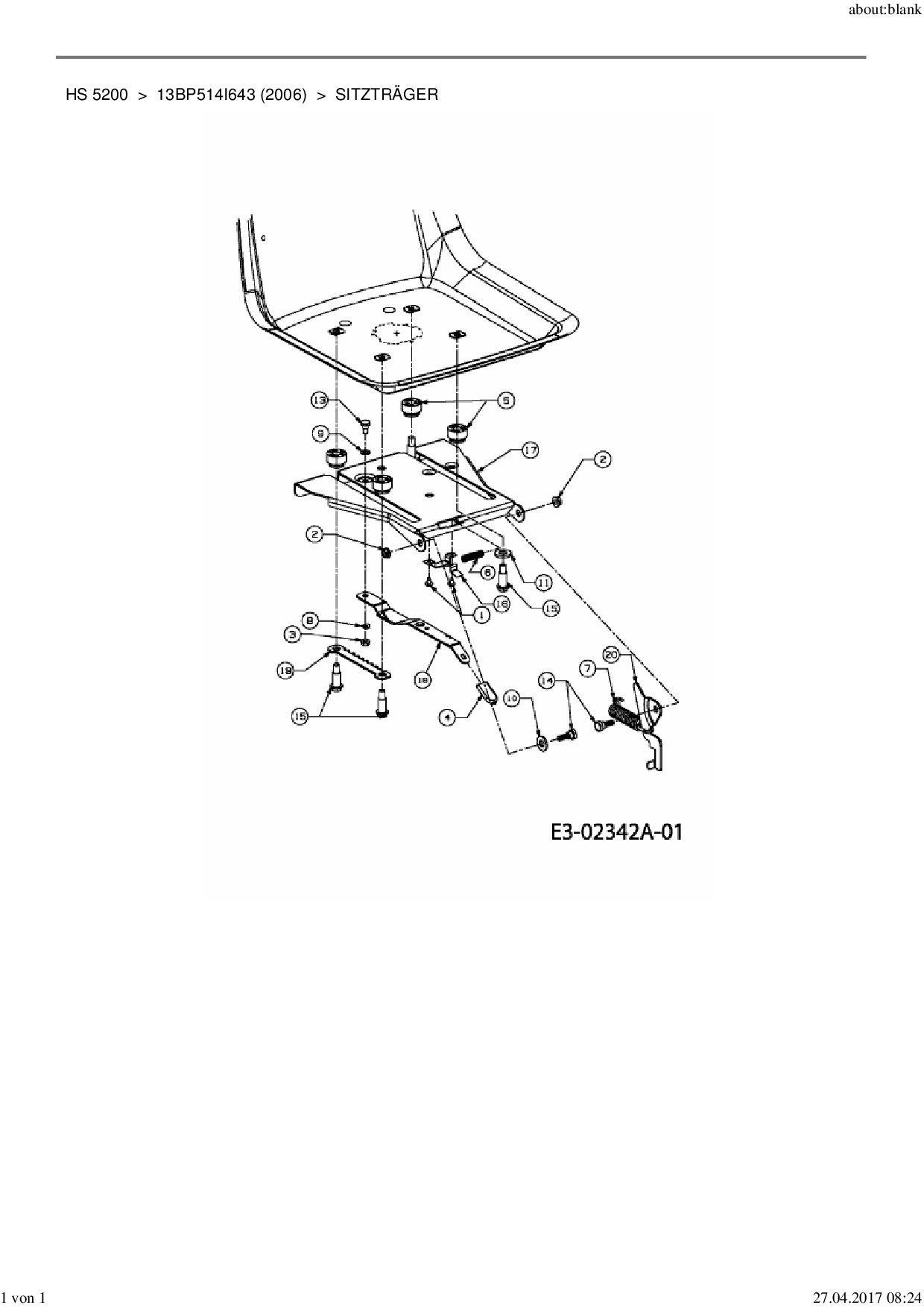 Download Ersatzteil-Zeichnung Yard-Man HS 5200 Zeichnung Sitzträger (PDF-Format)