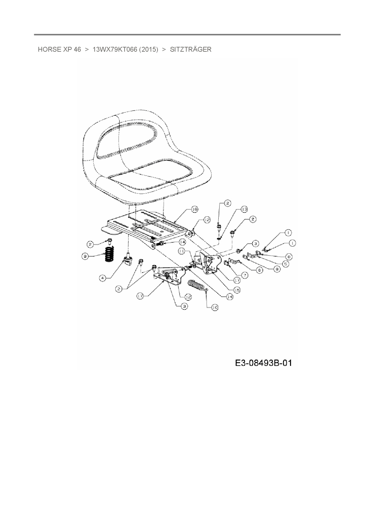 Ersatzteile für Rasentraktor Troy-Bilt Horse XP 46 aus der Zeichnung Sitzträger: