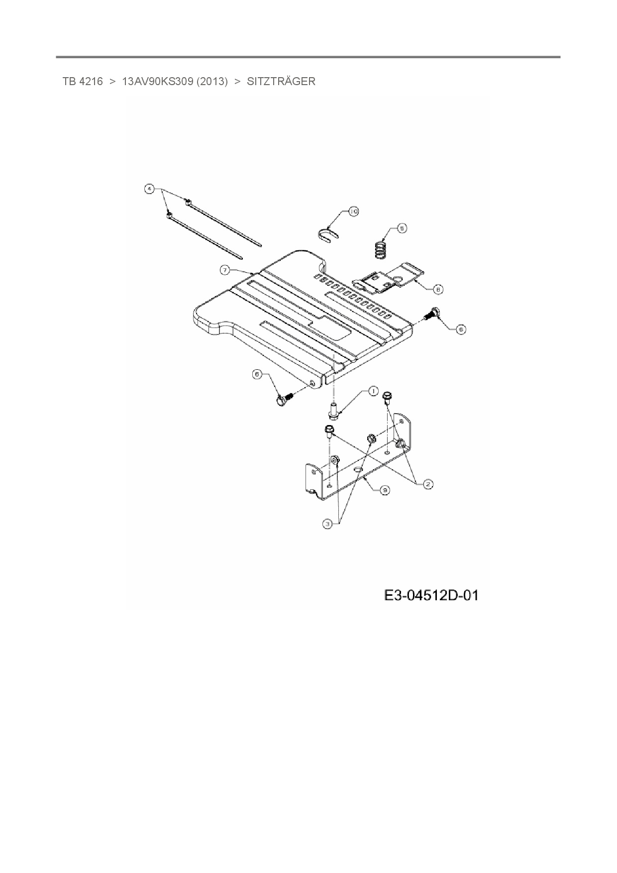Ersatzteile für Rasentraktor Troy-Bilt TB 4216 aus der Zeichnung Sitzträger: