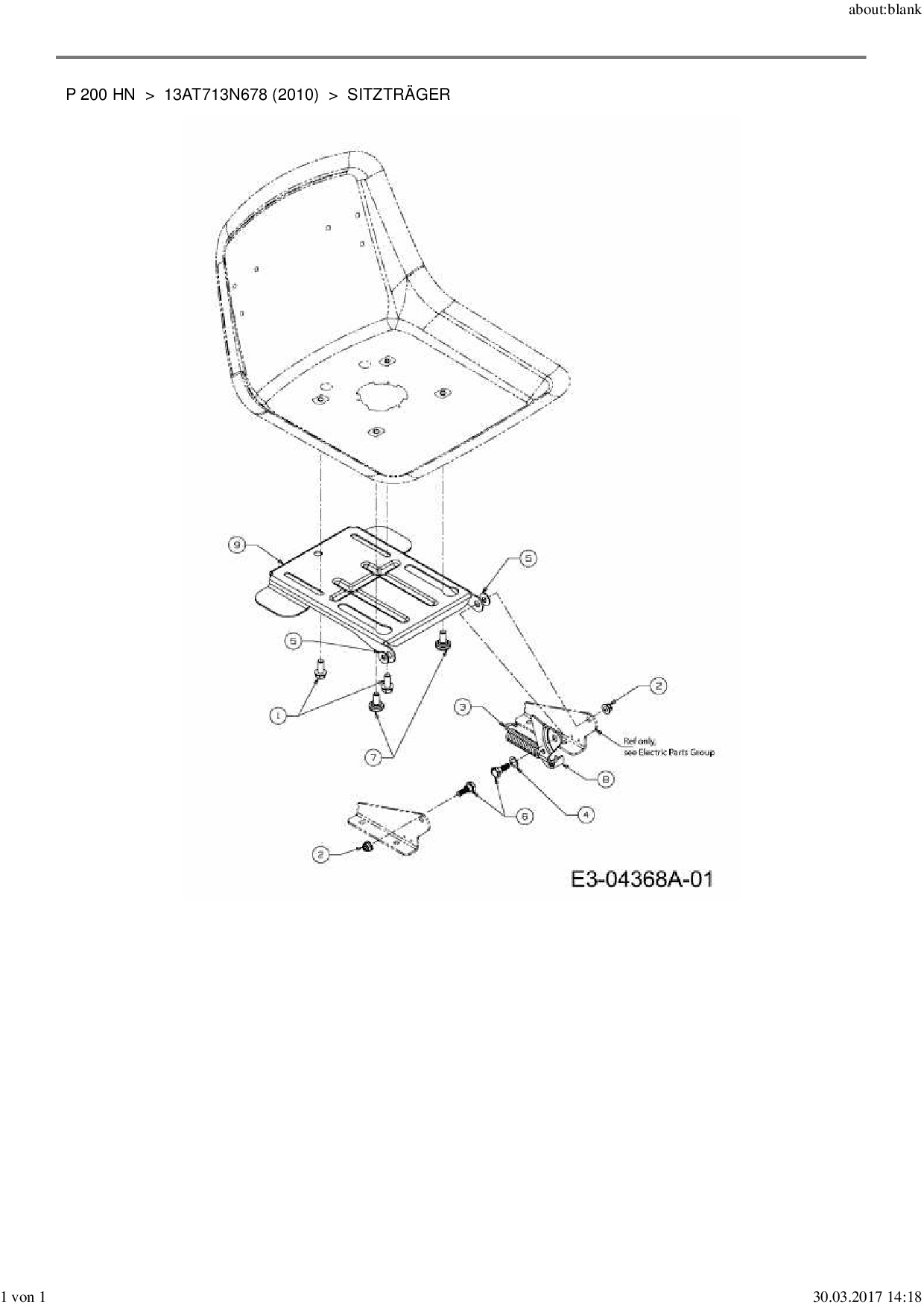 Ersatzteile für Rasentraktor MTD P 200 HN aus der Zeichnung Sitzträger:
