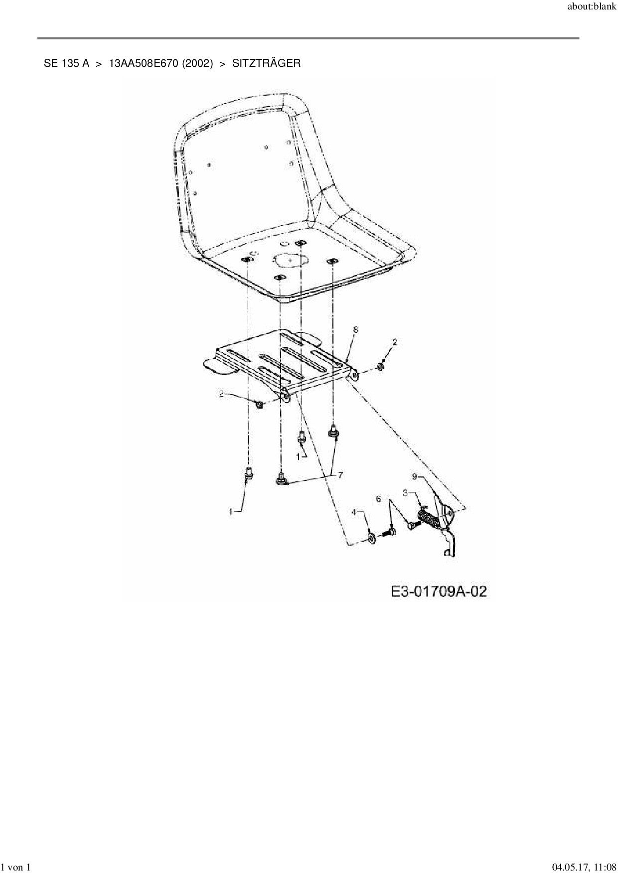 Ersatzteile für Rasentraktor MTD SE 135 A aus der Zeichnung Sitzträger: