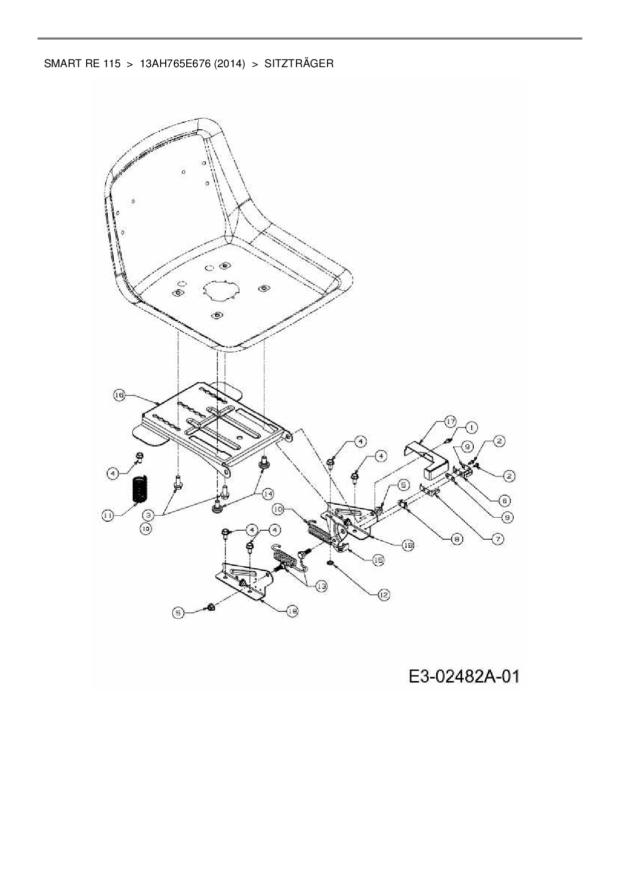 Ersatzteile für Rasentraktor MTD Smart RE 115 aus der Zeichnung Sitzträger: