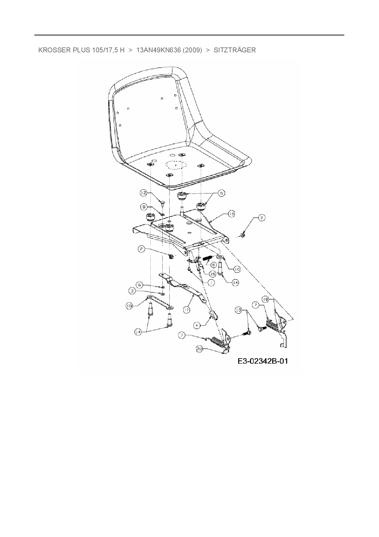 Ersatzteile für Rasentraktor Oleo-Mac Krosser Plus 105/17,5 H aus der Zeichnung Sitzträger: