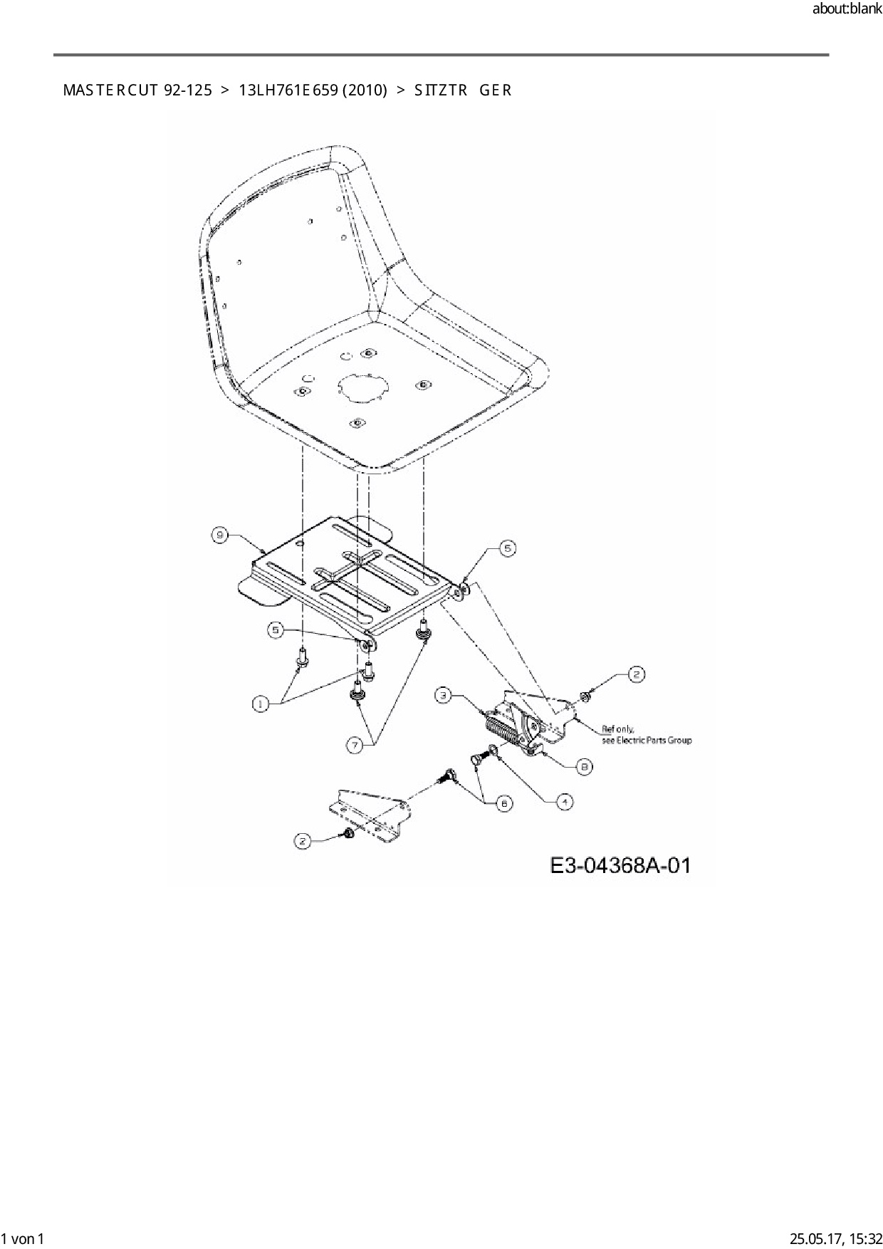 Ersatzteile für Rasentraktor Mastercut Mastercut 92-125 aus der Zeichnung Sitzträger: