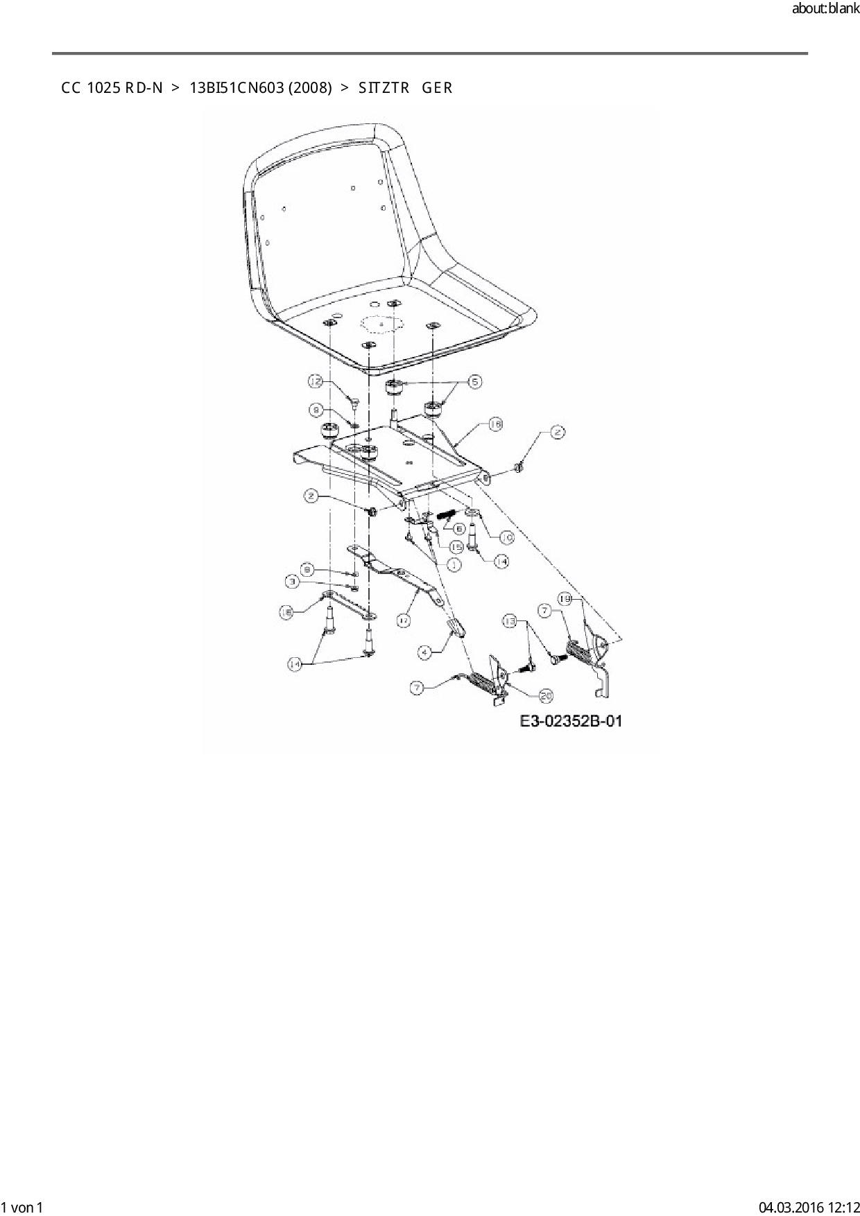 Ersatzteile für Rasentraktor Cub Cadet CC 1025 RD-N aus der Zeichnung Sitzträger: