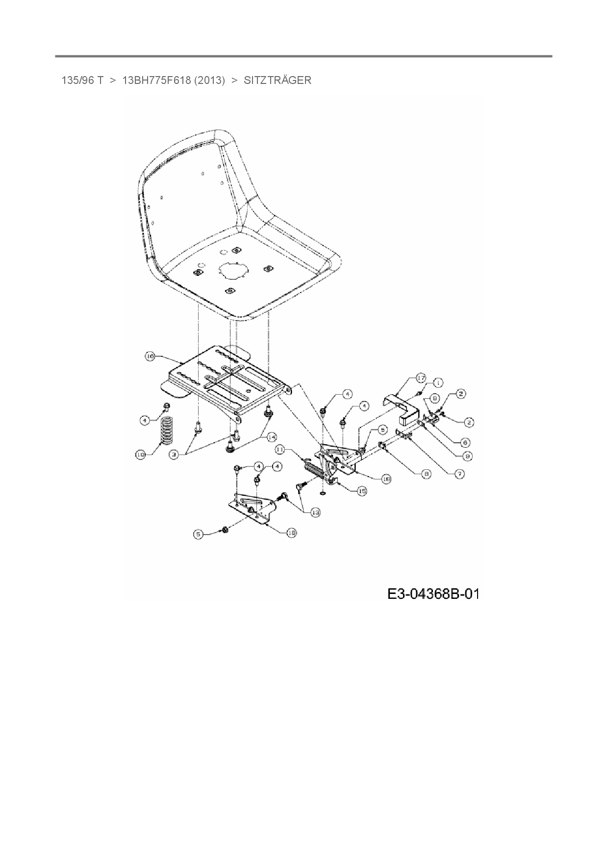Ersatzteile für Rasentraktor Rasor 135/96 T aus der Zeichnung Sitzträger: