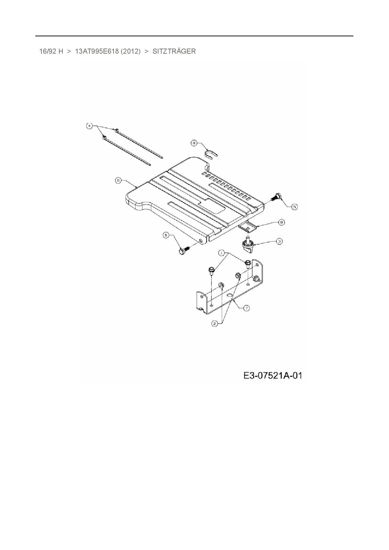 Ersatzteile für Rasentraktor Rasor 16/92 H aus der Zeichnung Sitzträger: