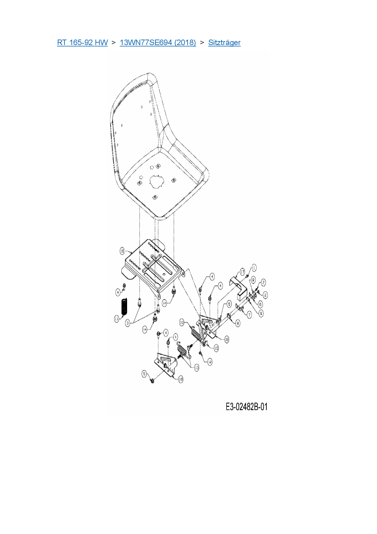 Ersatzteile für Rasentraktor Lux Tools RT 165-92 HW aus der Zeichnung Sitzträger: