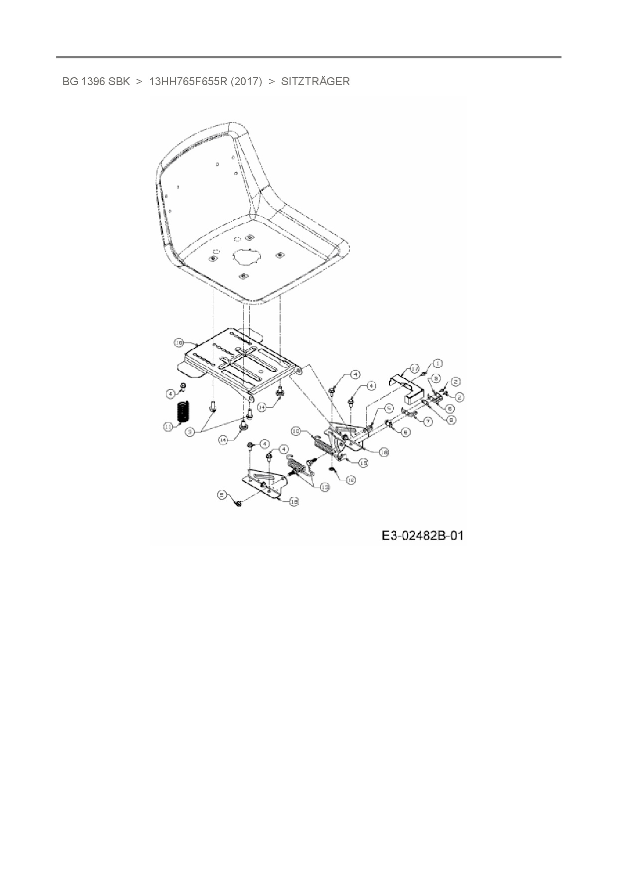 Ersatzteile für Rasentraktor Bestgreen BG 1396 SBK aus der Zeichnung Sitzträger:
