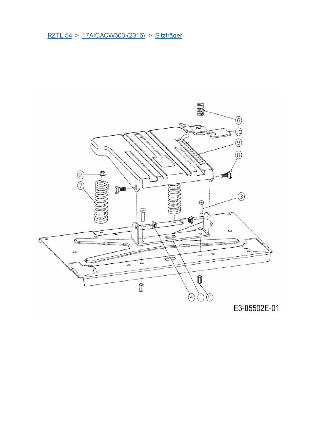 Ersatzteile für Zero Turn Cub Cadet RZTL 54 aus der Zeichnung Sitzträger: