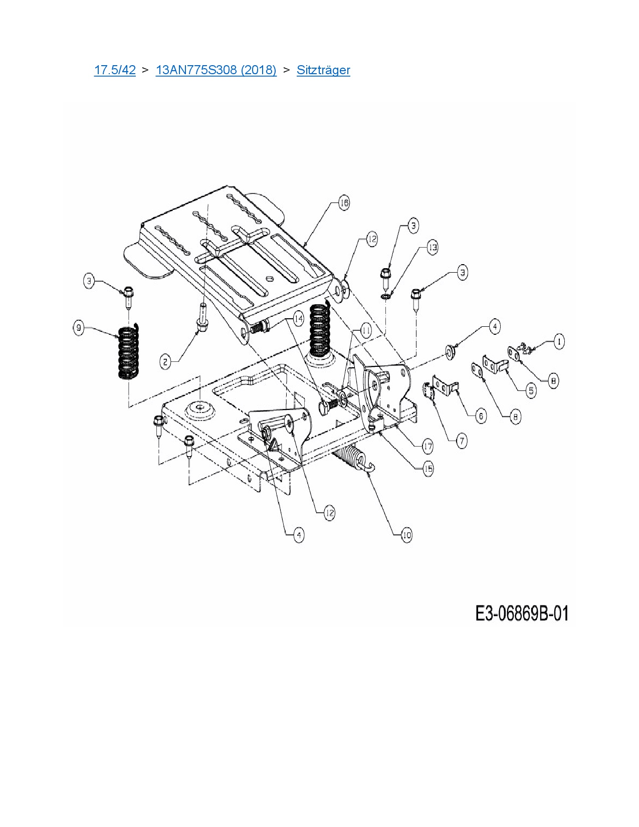 Ersatzteile für Rasentraktor MTD 17.5/42 aus der Zeichnung Sitzträger: