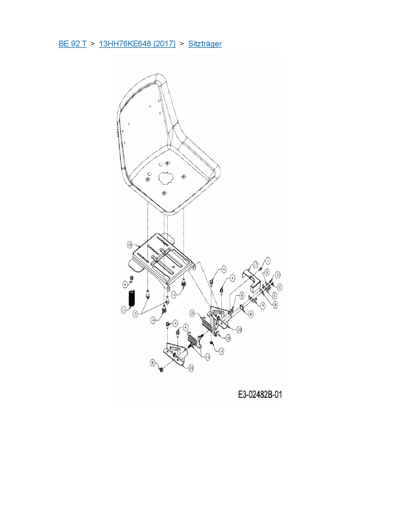Ersatzteile für Rasentraktor MTD BE 92 T aus der Zeichnung Sitzträger: