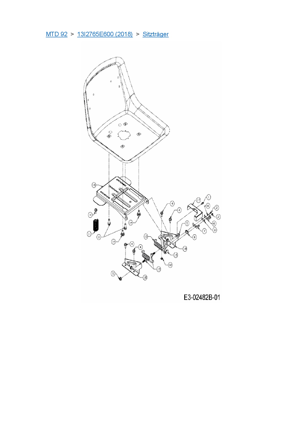 Download Ersatzteil-Zeichnung MTD MTD 92 Zeichnung Sitzträger (PDF-Format)