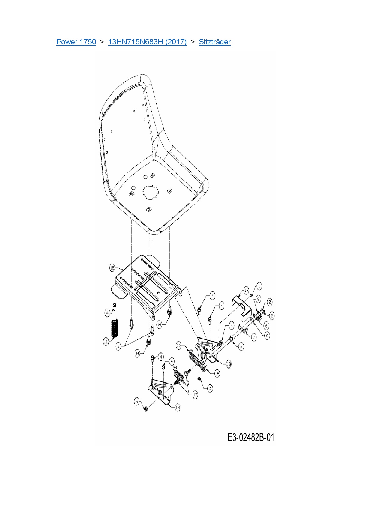 Ersatzteile für Rasentraktor MTD Power 1750 aus der Zeichnung Sitzträger: