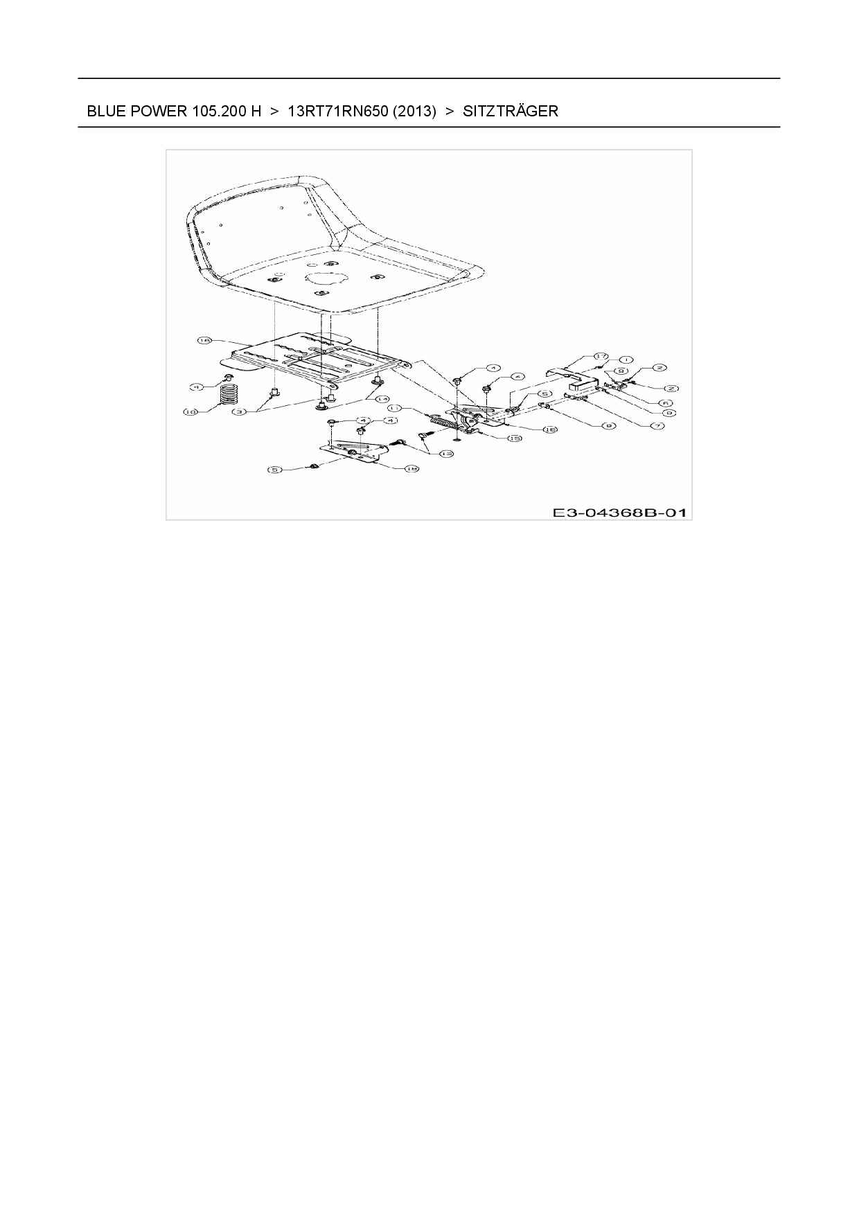 Download Ersatzteil-Zeichnung Wolf-Garten Blue Power 105.200 H Zeichnung Sitzträger (PDF-Format)