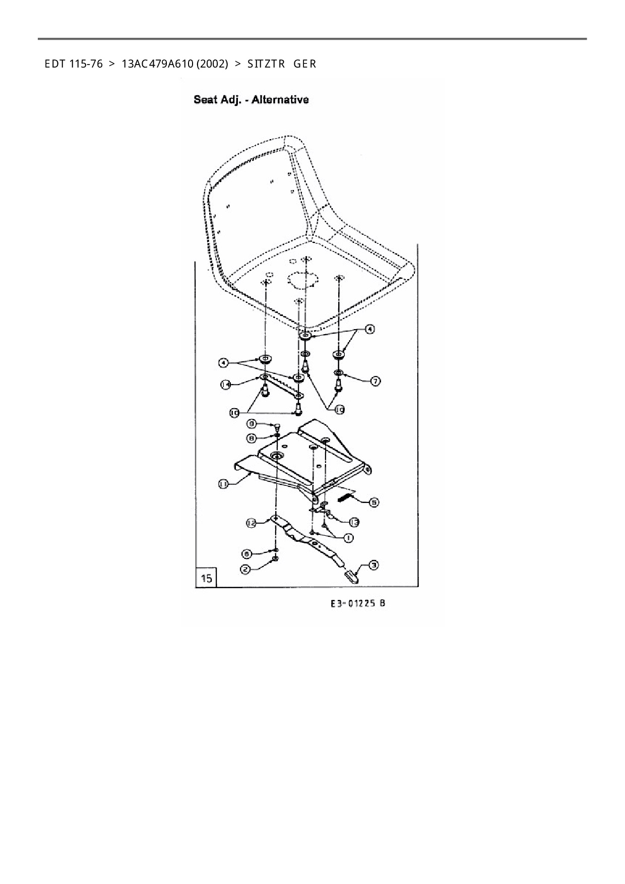 Ersatzteile für Rasentraktor EDT EDT 115-76 aus der Zeichnung Sitzträger: