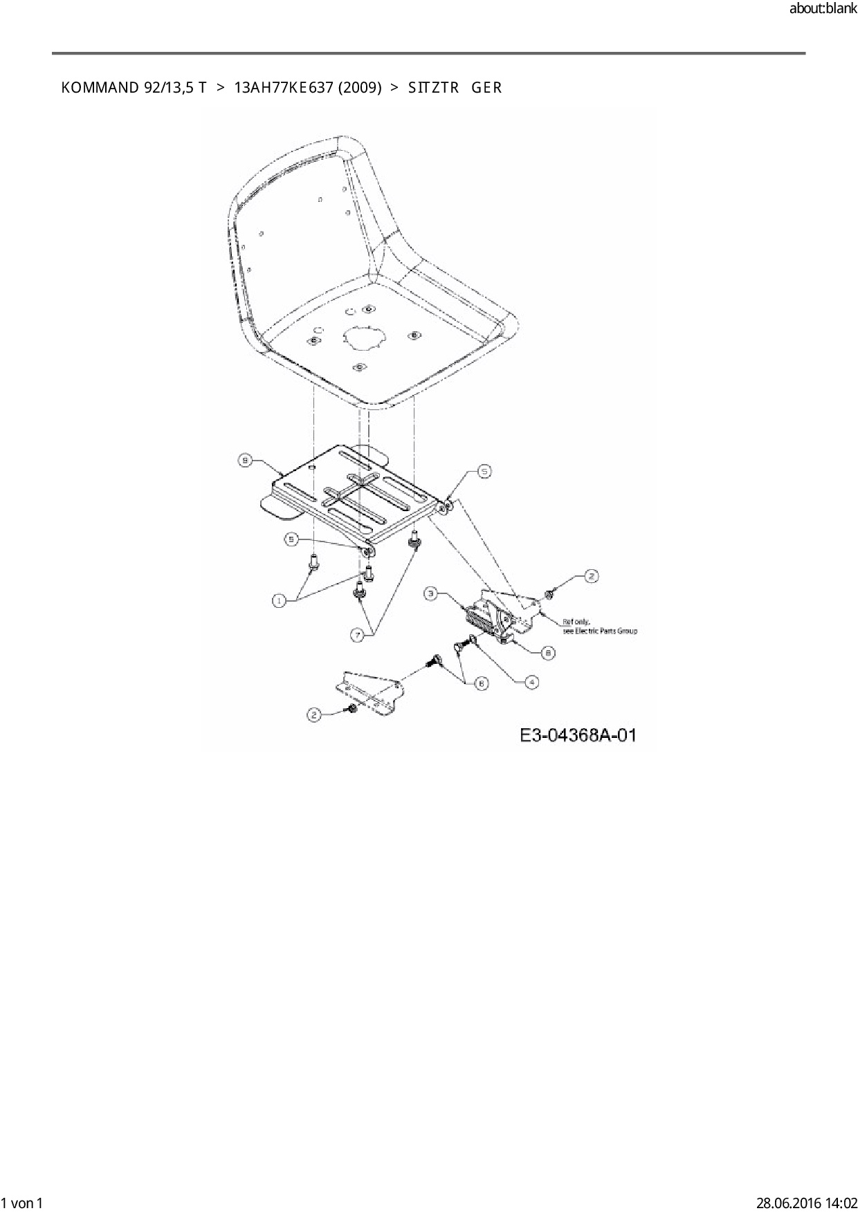 Ersatzteile für Rasentraktor EFCO Kommand 92/13,5 T aus der Zeichnung Sitzträger: