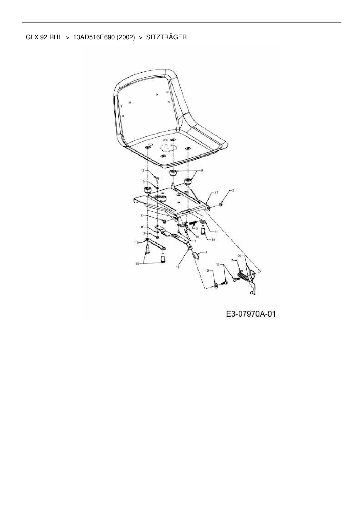 Ersatzteile für Rasentraktor Gutbrod GLX 92 RHL aus der Zeichnung Sitzträger: