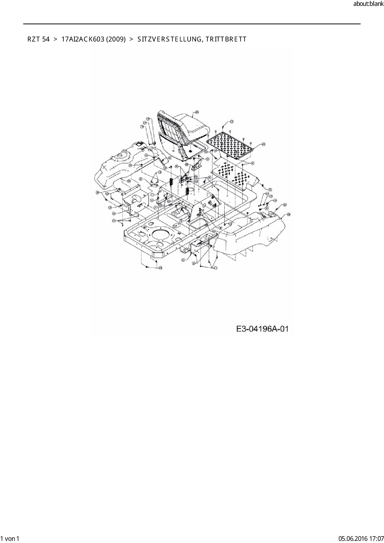 Ersatzteile für Zero Turn Cub Cadet RZT 54 aus der Zeichnung Sitzverstellung, Trittbrett 1: