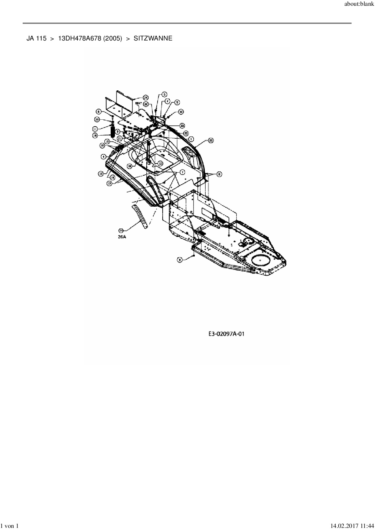 Ersatzteile für Rasentraktor MTD JA 115 aus der Zeichnung Sitzwanne 2: