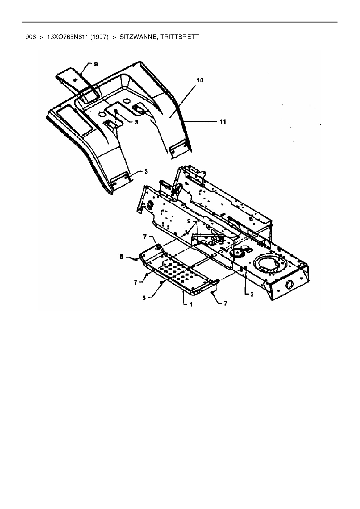 Ersatzteile für Rasentraktor Lawnflite 906 aus der Zeichnung Sitzwanne, Trittbrett 1: