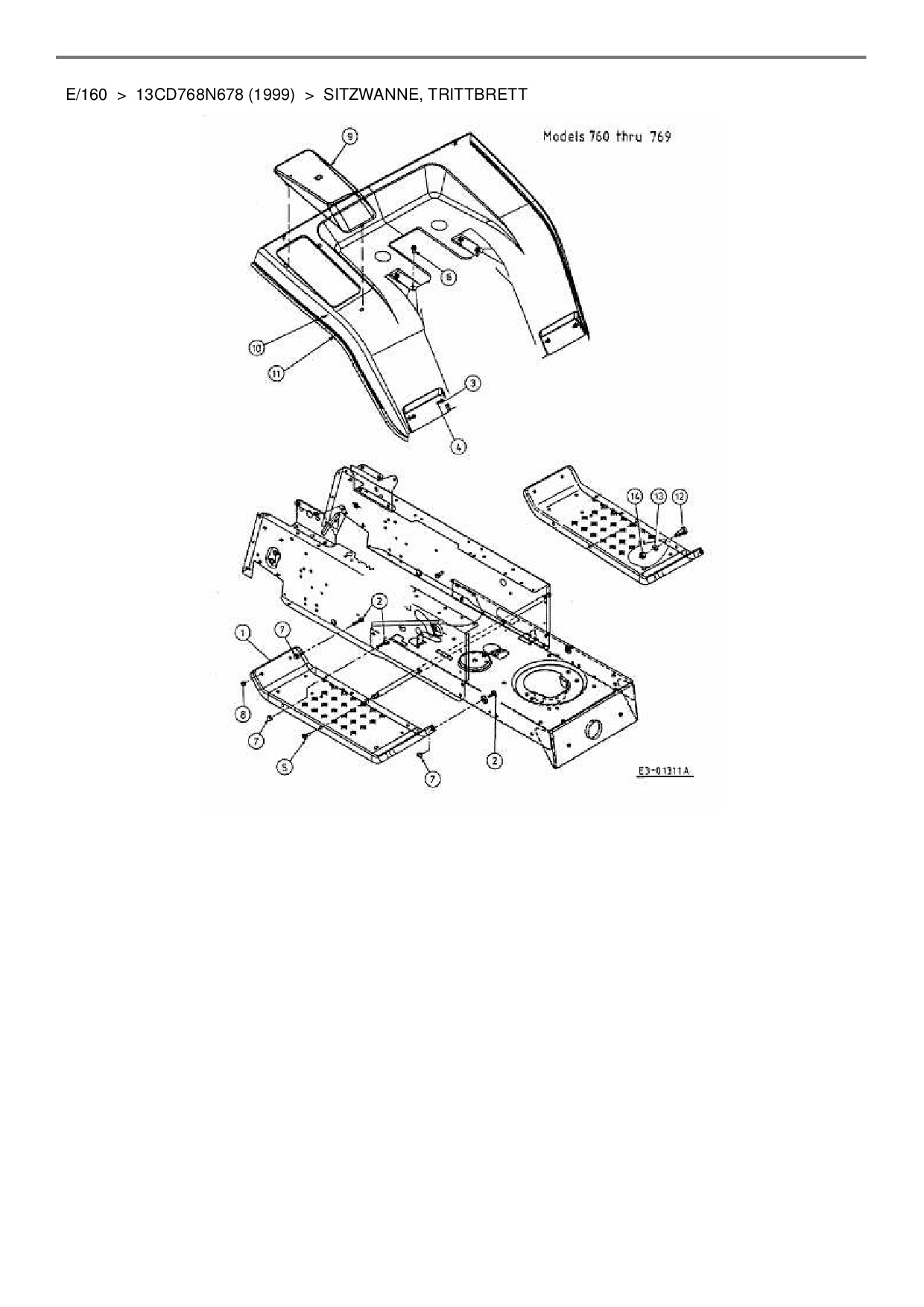 Ersatzteile für Rasentraktor MTD E/160 aus der Zeichnung Sitzwanne, Trittbrett: