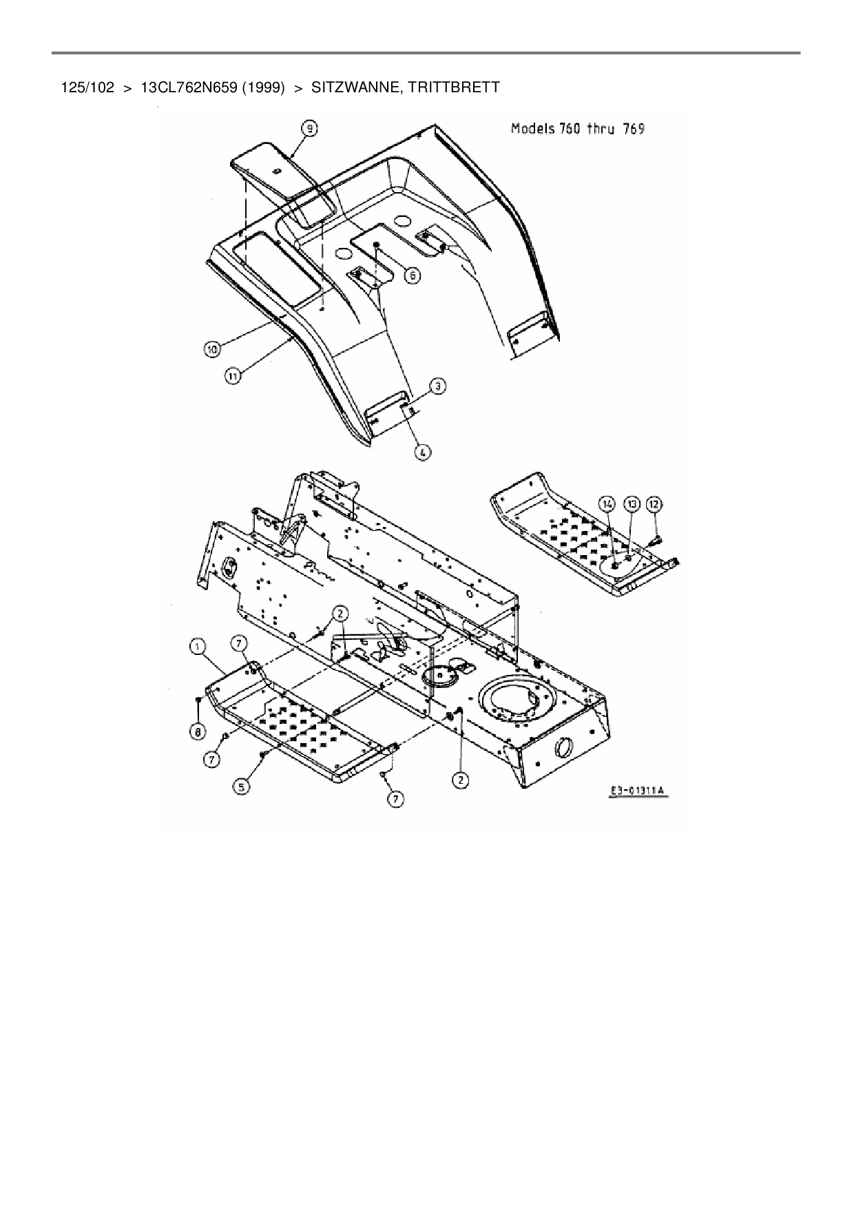 Ersatzteile für Rasentraktor Mastercut 125/102 aus der Zeichnung Sitzwanne, Trittbrett: