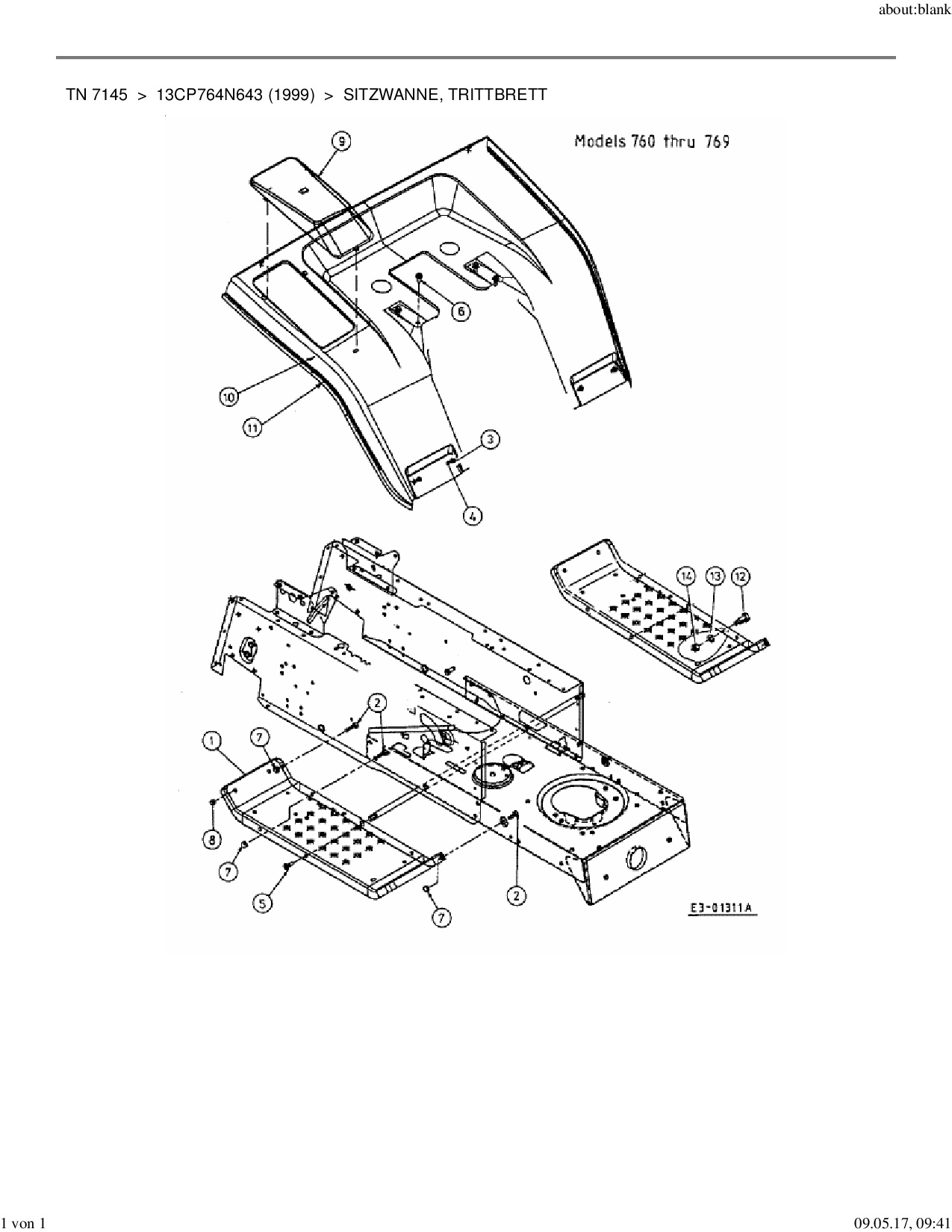 Ersatzteile für Rasentraktor Yard-Man TN 7145 aus der Zeichnung Sitzwanne, Trittbrett: