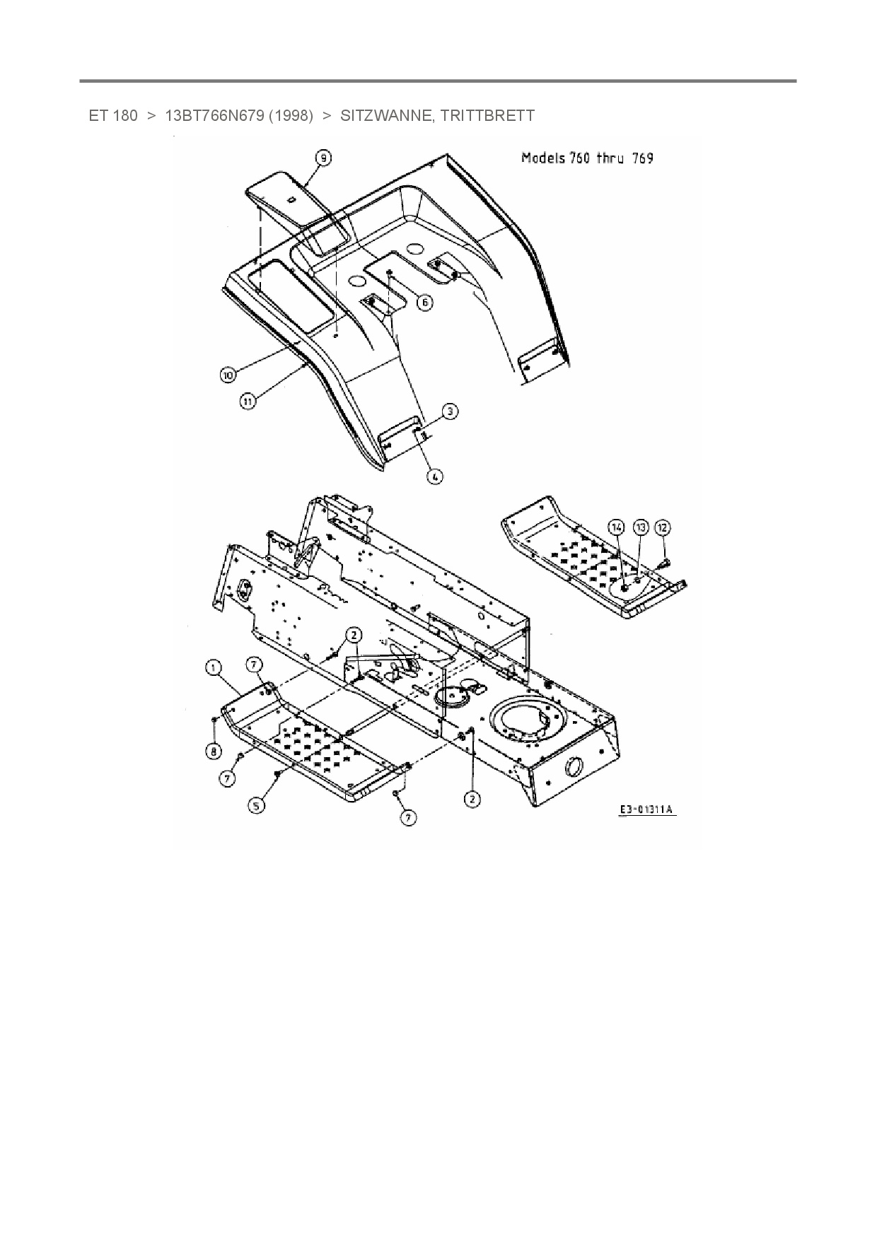 Ersatzteile für Rasentraktor White ET 180 aus der Zeichnung Sitzwanne, Trittbrett: