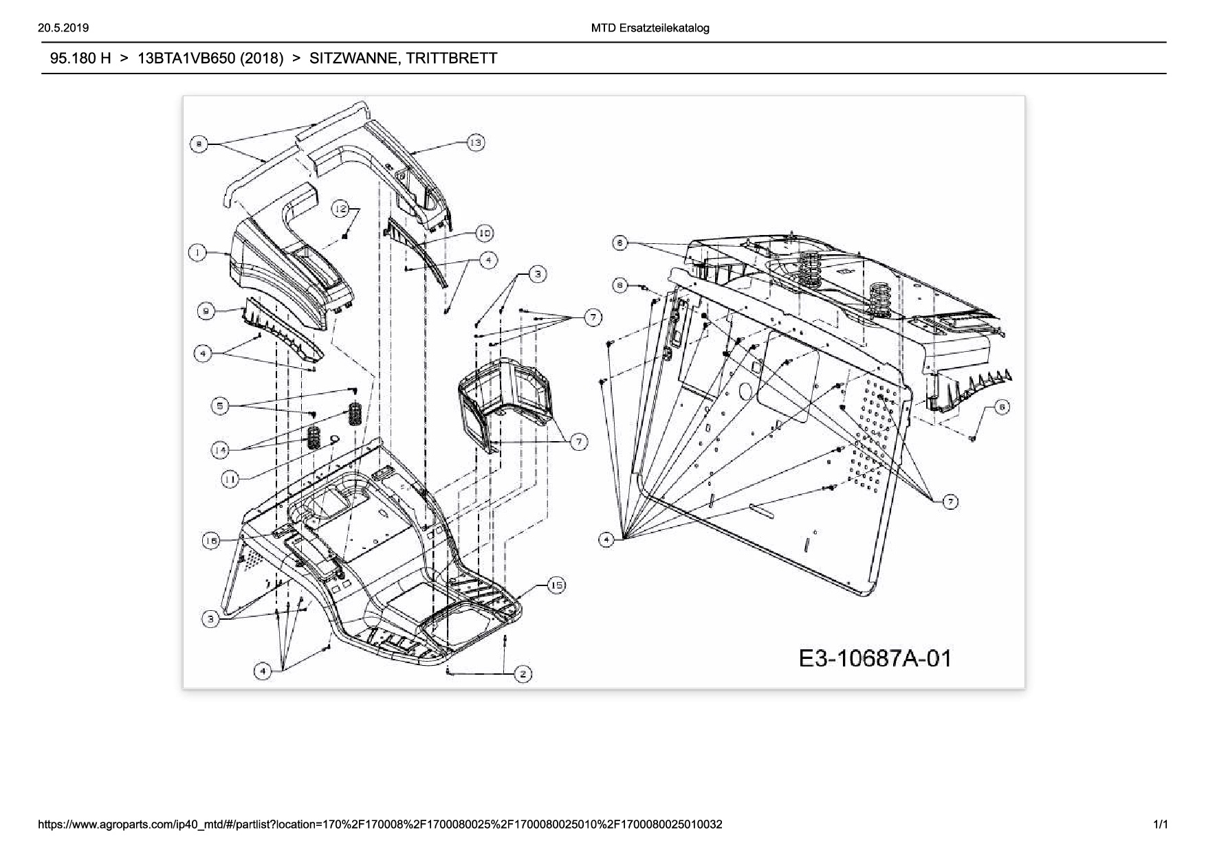 Ersatzteile für Rasentraktor Wolf-Garten Expert 95.180 H aus der Zeichnung Sitzwanne, Trittbrett: