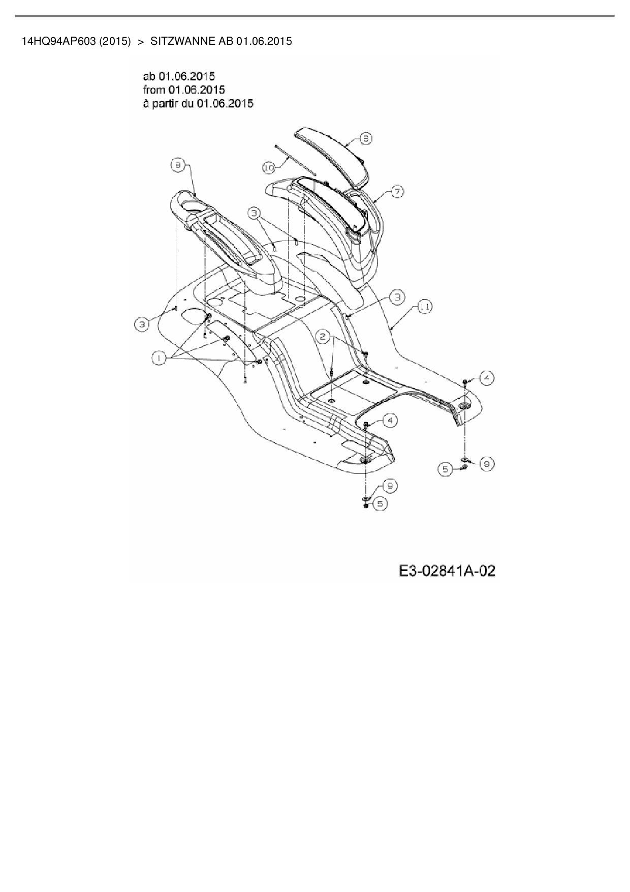 Ersatzteile für Gartentraktor Cub Cadet CC 1224 KHP aus der Zeichnung Sitzwanne ab 01.06.2015: