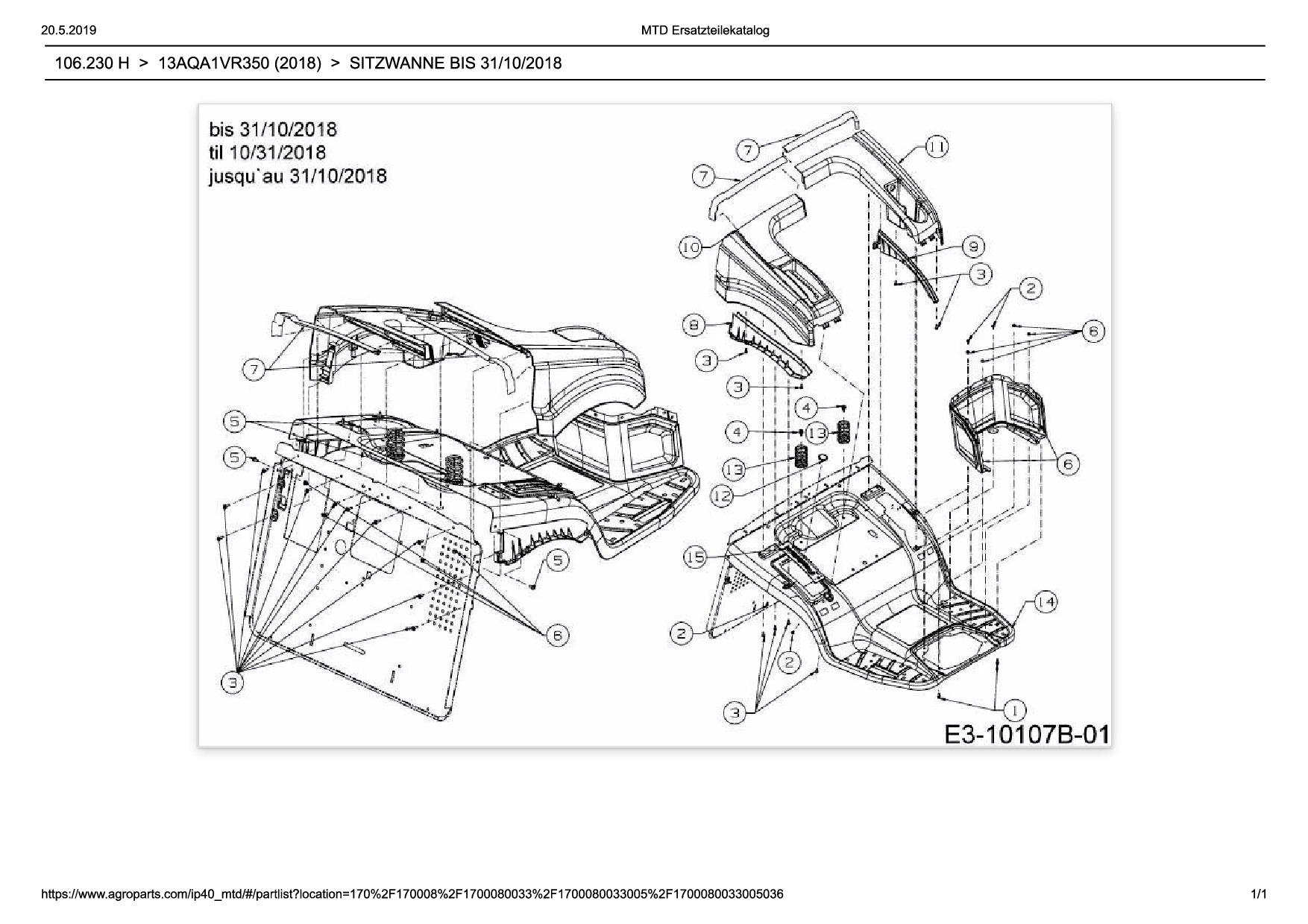 Ersatzteile für Rasentraktor Wolf-Garten Expert 106.230 H aus der Zeichnung Sitzwanne bis 31/10/2018: