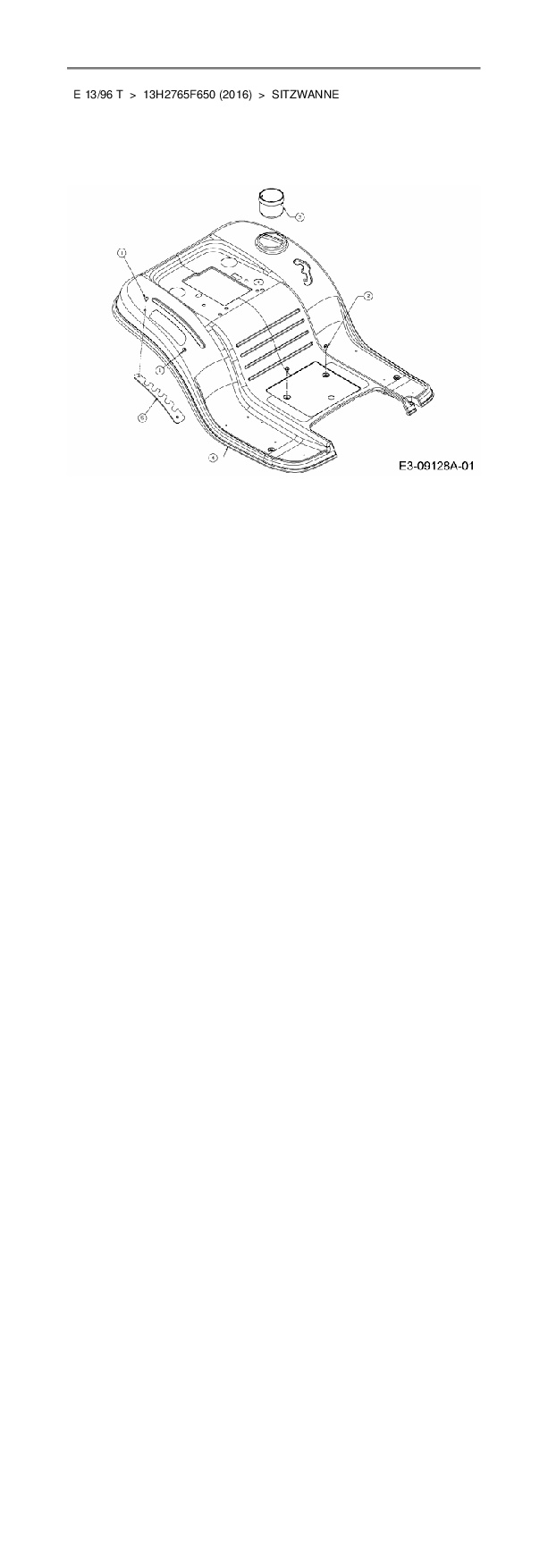 Ersatzteile für Rasentraktor Wolf-Garten E 13/96 T aus der Zeichnung Sitzwanne: