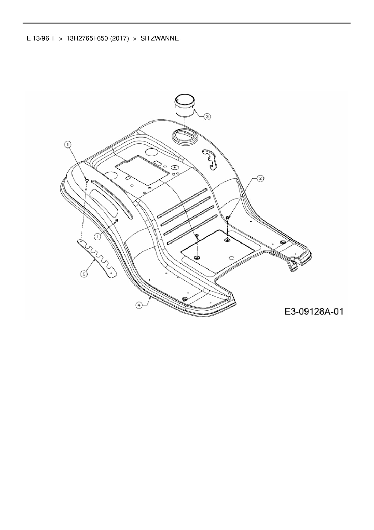 Ersatzteile für Rasentraktor Wolf-Garten E 13/96 T aus der Zeichnung Sitzwanne: