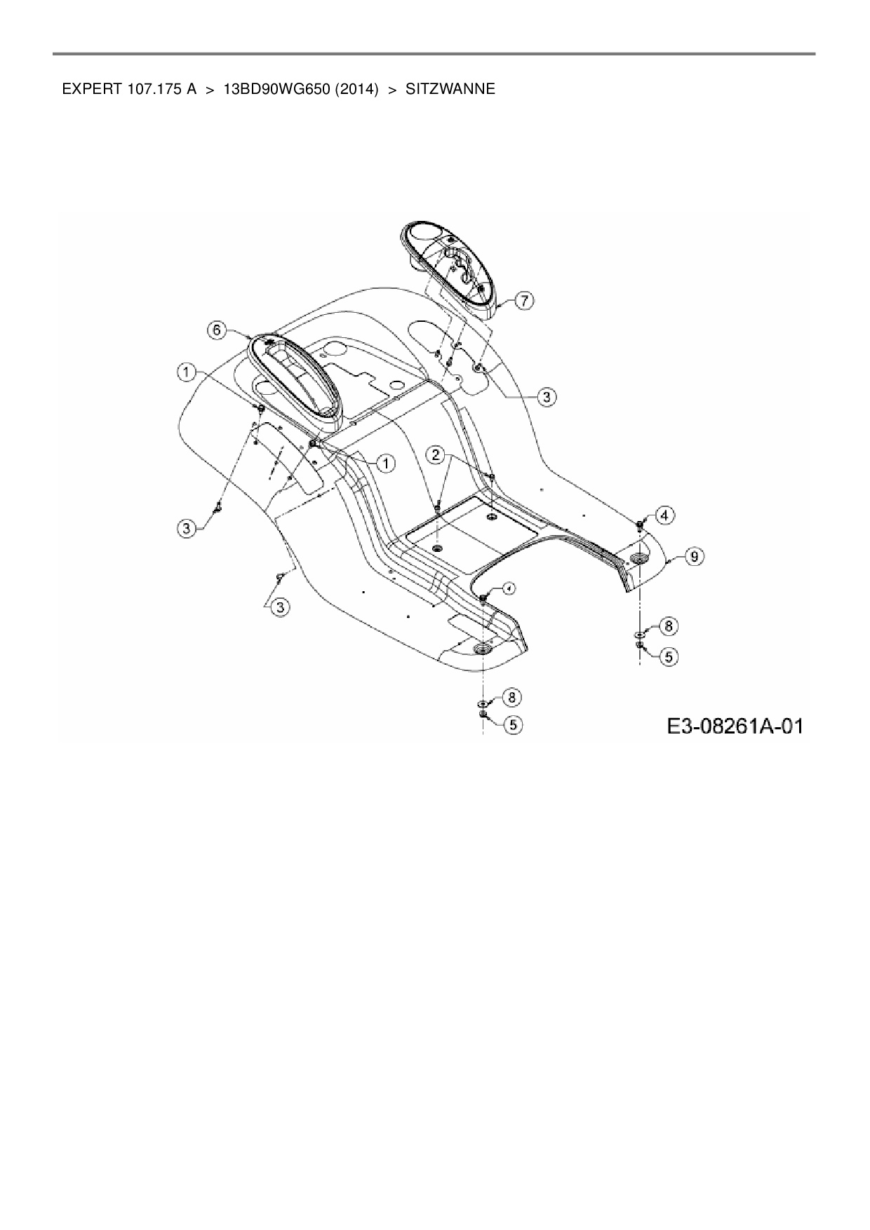 Ersatzteile für Rasentraktor Wolf-Garten Expert Expert 107.175 A aus der Zeichnung Sitzwanne: