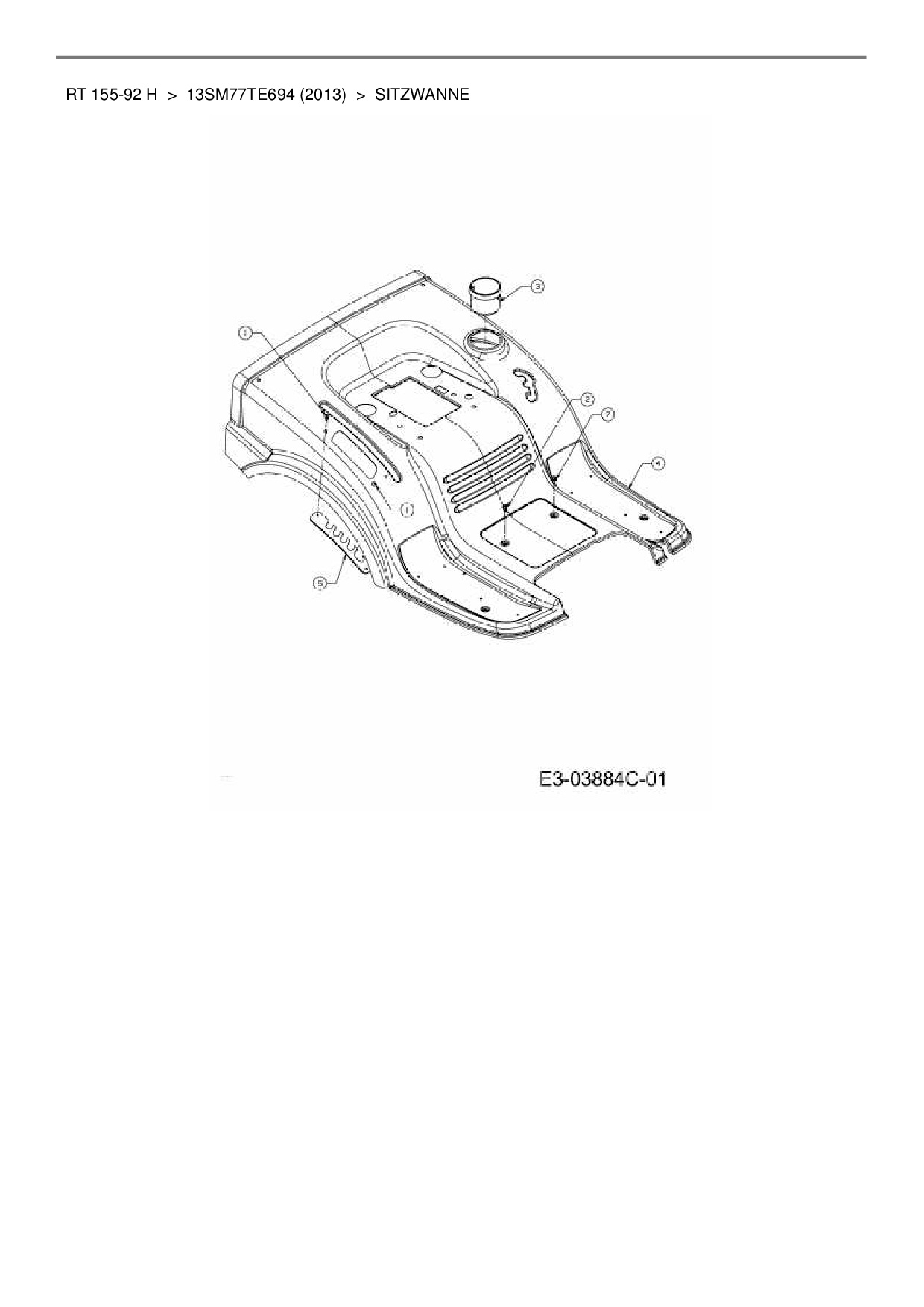 Ersatzteile für Rasentraktor Lux Tools RT 155-92 H aus der Zeichnung Sitzwanne: