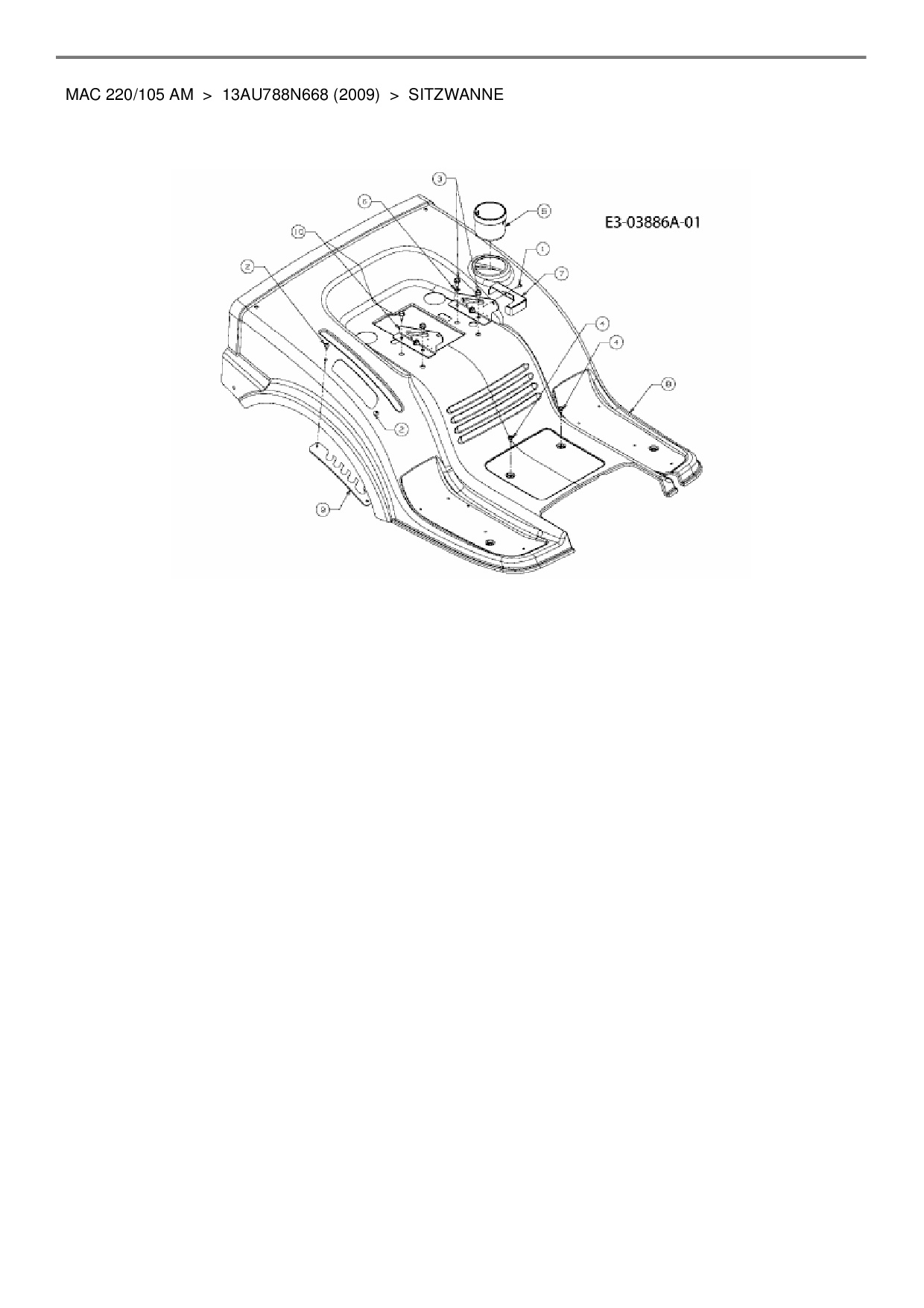 Ersatzteile für Rasentraktor Mac Allister Mac 220/105 AM aus der Zeichnung Sitzwanne:
