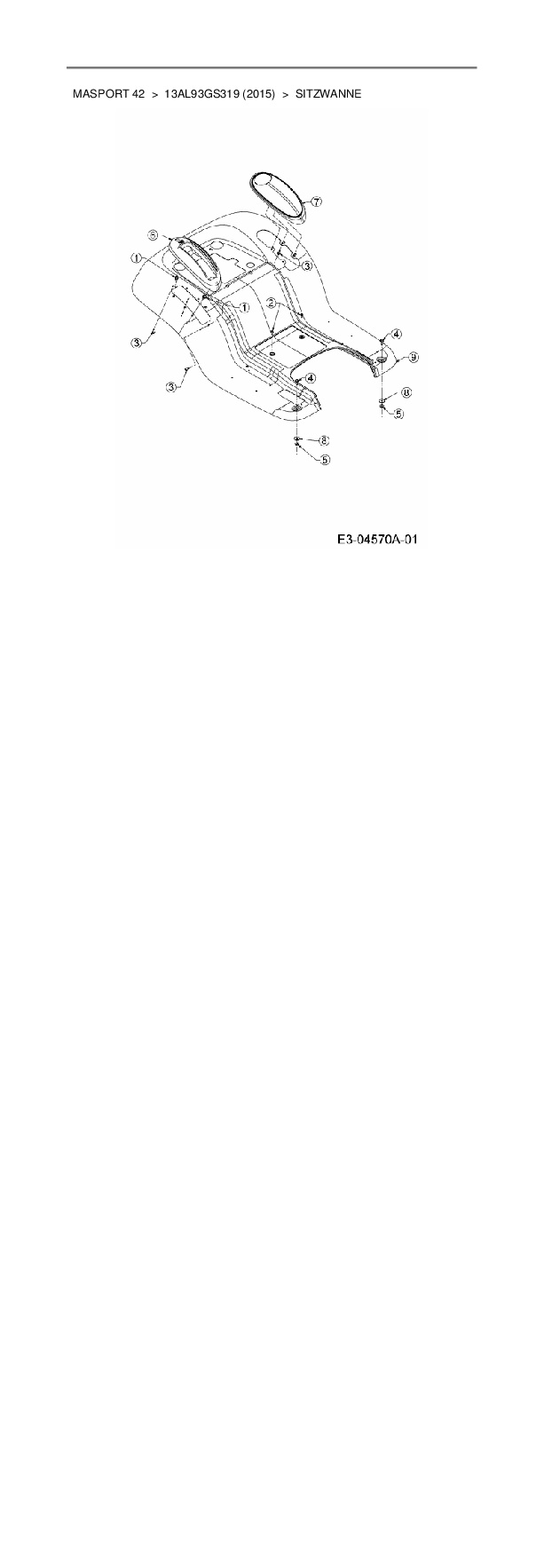 Ersatzteile für Rasentraktor Masport Masport 42 aus der Zeichnung Sitzwanne: