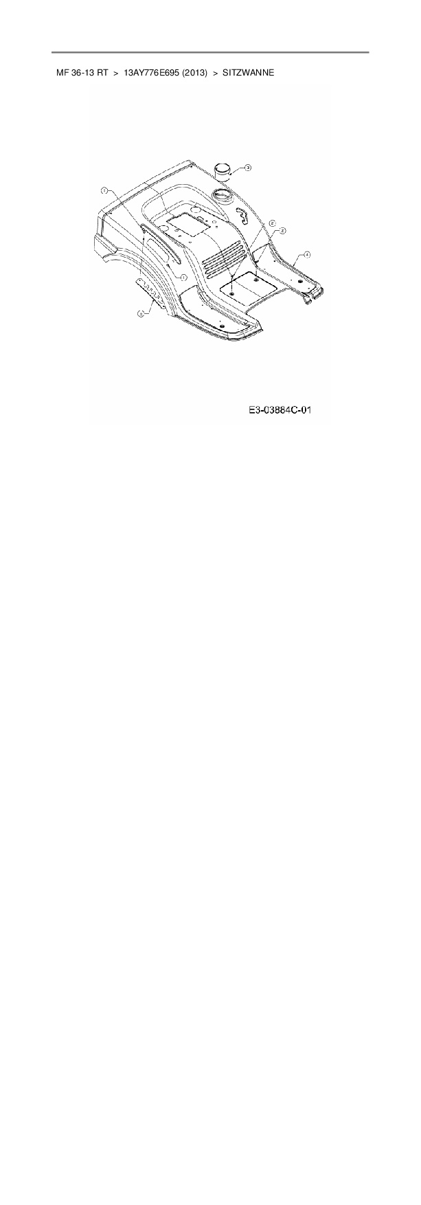 Ersatzteile für Rasentraktor Massey Ferguson MF 36-13 RT aus der Zeichnung Sitzwanne: