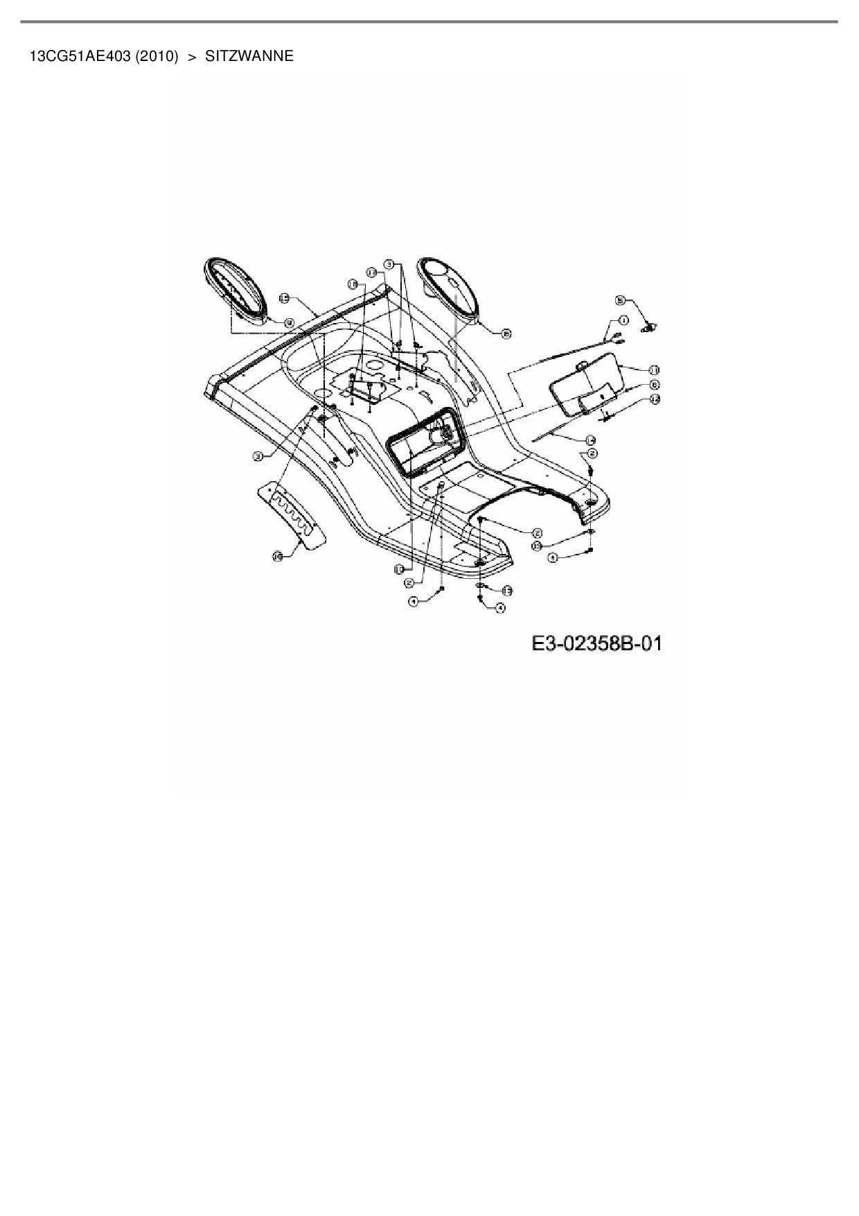 Ersatzteile für Rasentraktor Cub Cadet CC 1016 RD-E aus der Zeichnung Sitzwanne: