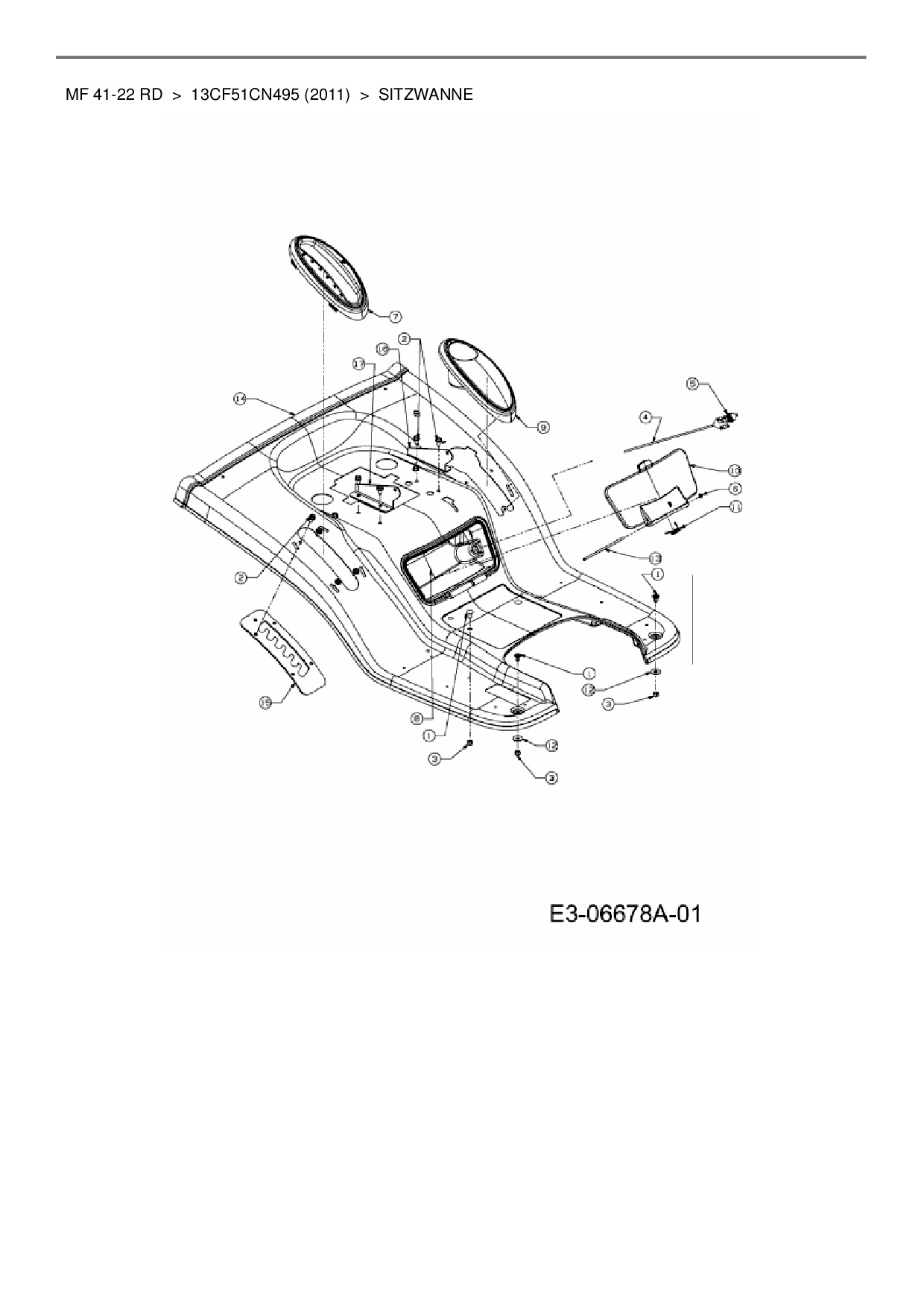 Zeichnung für Massey Ferguson Rasentraktor MF 41-22 RD mit der Geräte-Artikelnr. 13CF51CN495 ab Baujahr 2011: