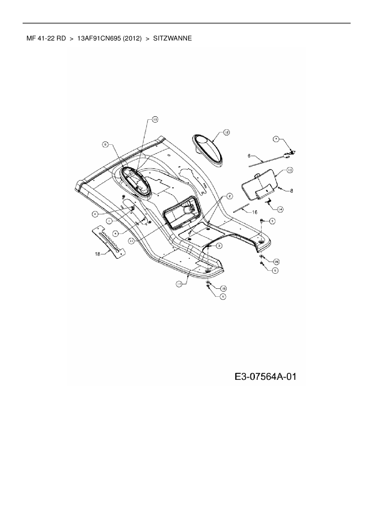 Ersatzteile für Rasentraktor Massey Ferguson MF 41-22 RD aus der Zeichnung Sitzwanne: