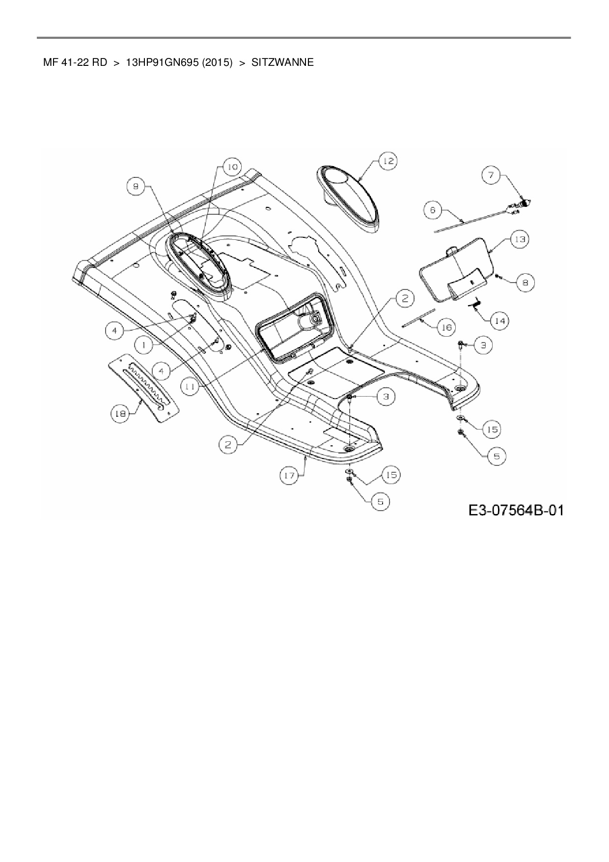 Zeichnung für Massey Ferguson Rasentraktor MF 41-22 RD mit der Geräte-Artikelnr. 13HP91GN695 ab Baujahr 2015: