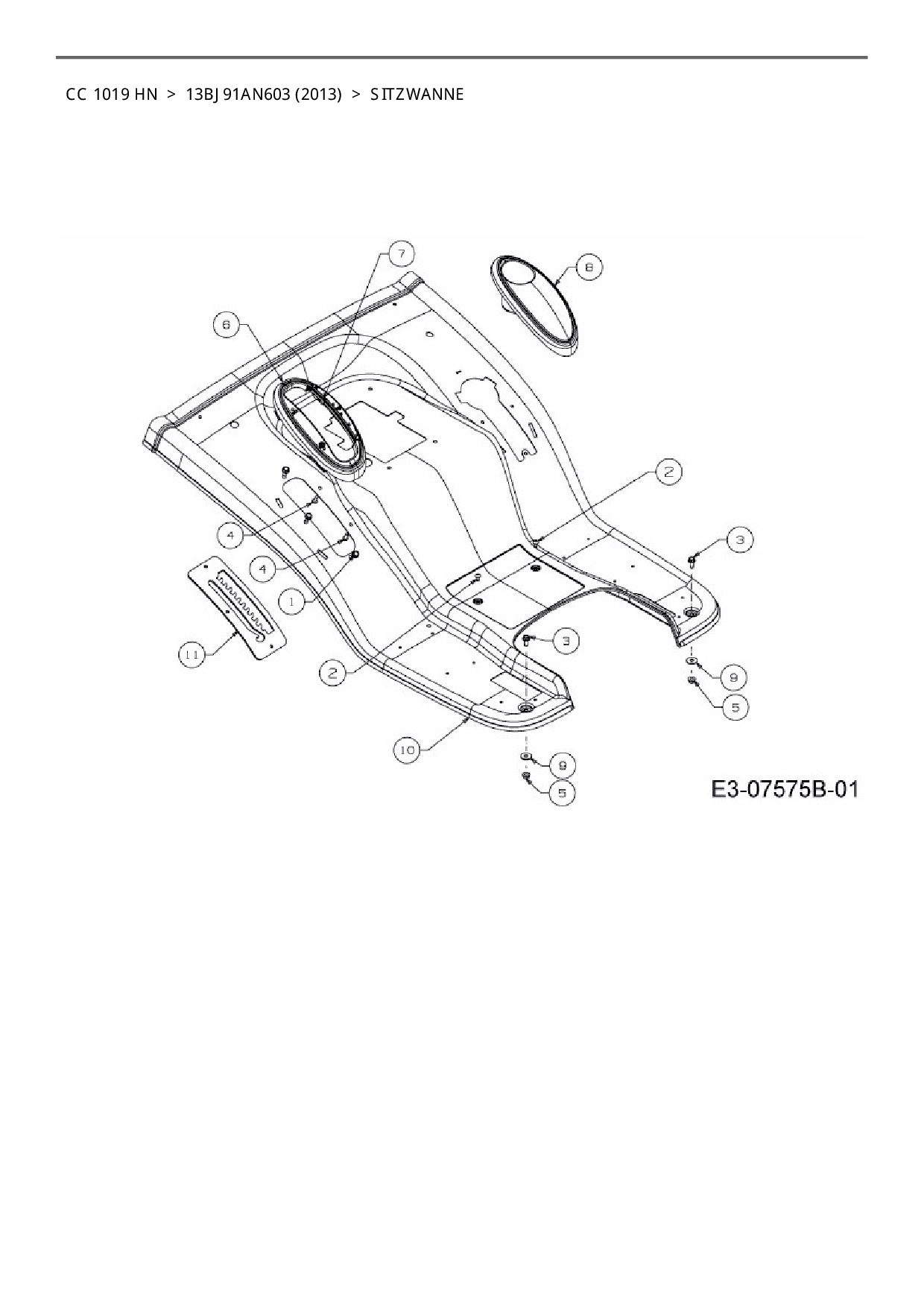 Download Ersatzteil-Zeichnung Cub Cadet CC 1019 HN Zeichnung Sitzwanne (PDF-Format)